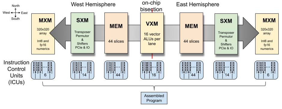 - 片上共有 144 个独立指令队列(ICU),每个可在每周期发射一条或多条指令,编译器可以显式控制每个队列内的程序顺序。